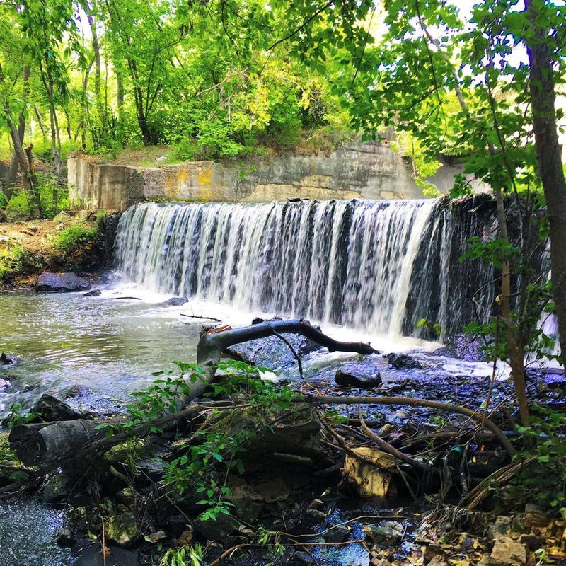 Недалеко от водопада находится старая паровая мельница. А с пруда