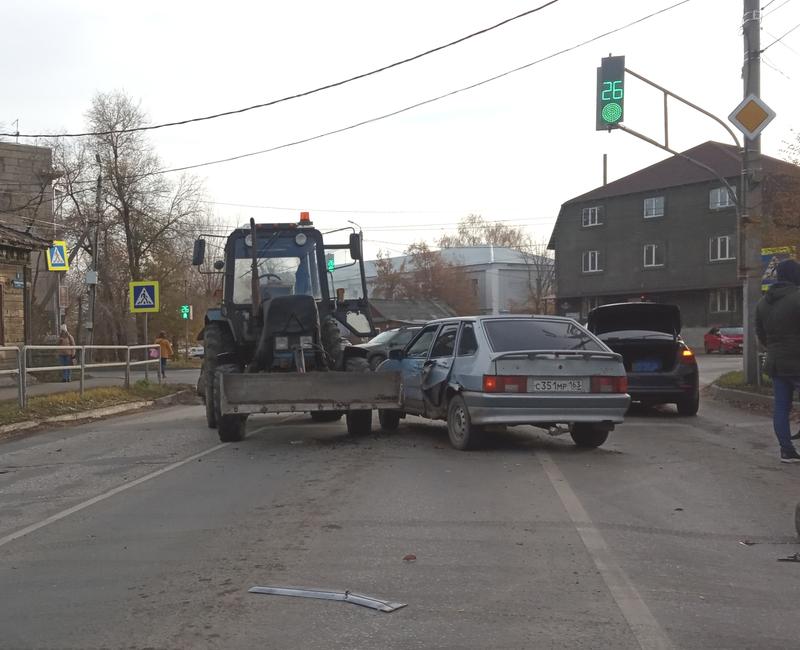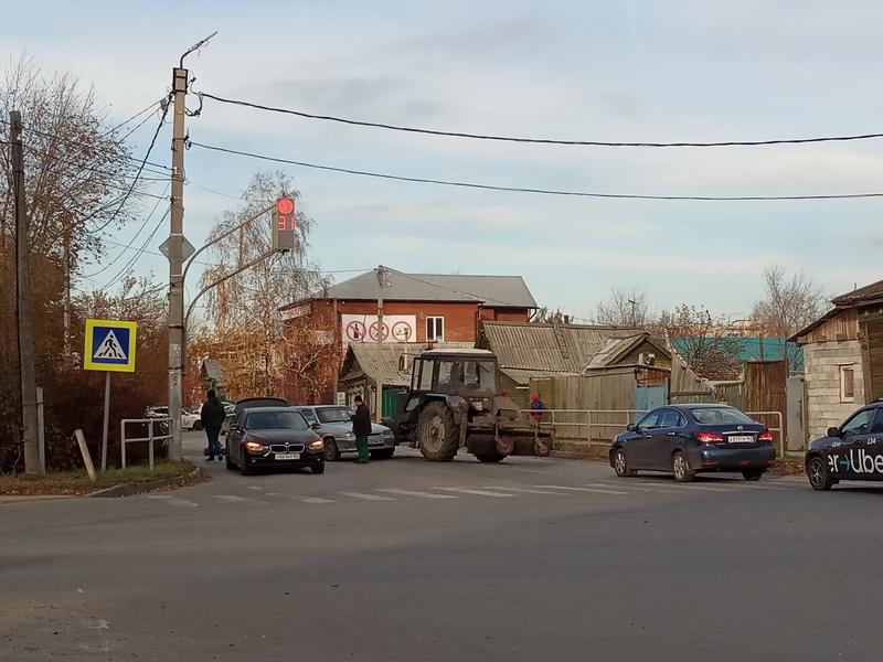 Водители ищут пути объезда: трактор и две легковушки сделали почти «непроходимым» перекресток в центре Сызрани