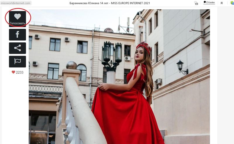 Ссылка на страницу Юлианы в конкурсе Miss Europe Internet 2021.