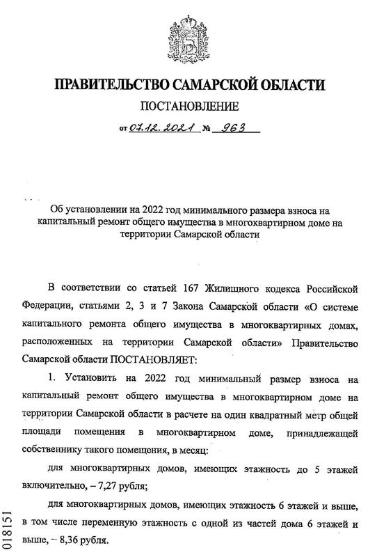 В правительстве Самарской области прокомментировали рост минимального взноса на капремонт в 2022 году, и сообщили, что было сделано, чтобы плата была бы, по мнению властей, доступной для граждан. Как ранее сообщал портал «маленькая Сызрань», во вторник, 7 декабря, правительство Самарской области приняло постановление о повышении минимального взноса на капремонт с 2022 года. Сейчас тариф для жителей домов высотой до 5 этажей составляет 6,63 рубля за квадратный метр, для собственников в МКД от 6 этажей и выше — по 7,62 рубля за квадратный метр. С января 2022 года, минвзнос составит 7,27 рубля и 8,36 рубля соответственно. Помимо денег самих жителей, ФКР получит и бюджетные средства: на 2022 год заложена рекордная сумма.