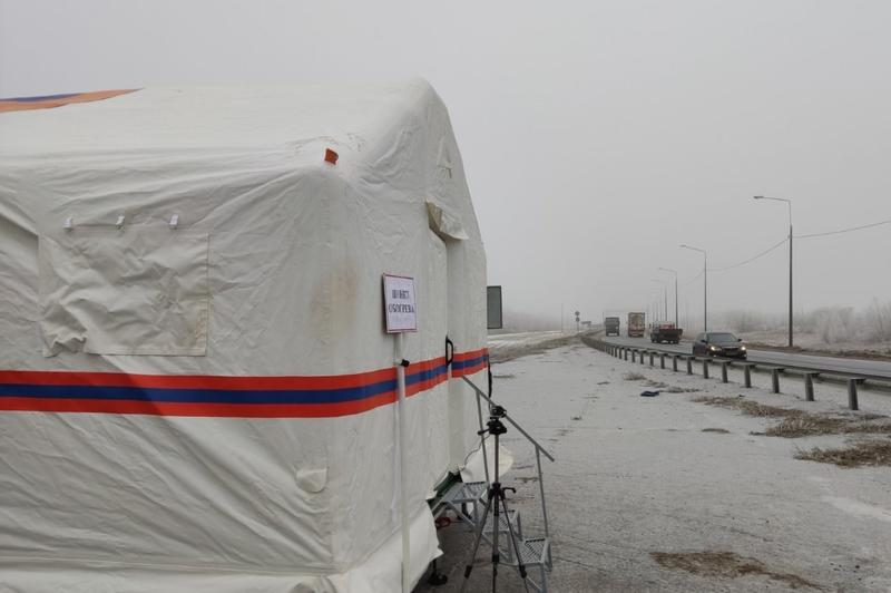 На трассе М-5 развернули палатки для спасения автомобилистов от ветра и стужи