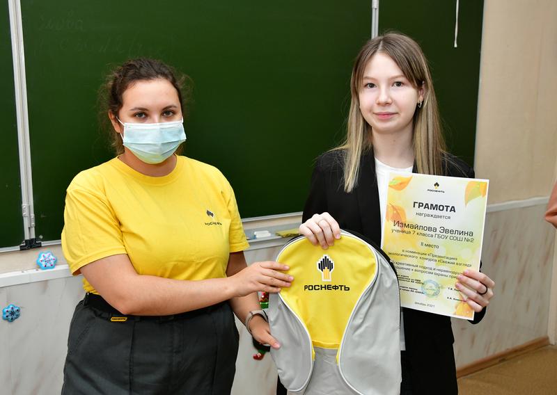 В числе самых активных участников конкурса «Свежий взгляд-2021» – ученики сызранской школы №21. Только от 3-В класса этого учебного заведения жюри получило сразу пять работ! Именно к третьеклассникам сотрудники АО «СНПЗ» пришли на экологический урок. Инженер отдела охраны окружающей среды Ирина Бурлакова рассказала о природоохранной политике «Роснефти». Школьники узнали, что помимо основной производственной деятельности нефтяники занимаются охраной редких видов животных, воспроизводством речных биоресурсов, посадкой деревьев, становятся инициаторами и участниками субботников по очистке берегов рек и родников, собирают макулатуру и пластик. На память о встрече ребята получили памятки, разработанные специалистами СНПЗ. В яркой брошюре собраны простые эко-советы для детей и взрослых.