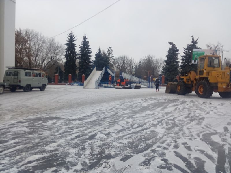 На центральной площади Сызрани коммунальщики монтируют популярную у маленьких горожан горку