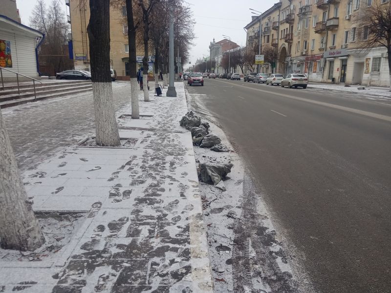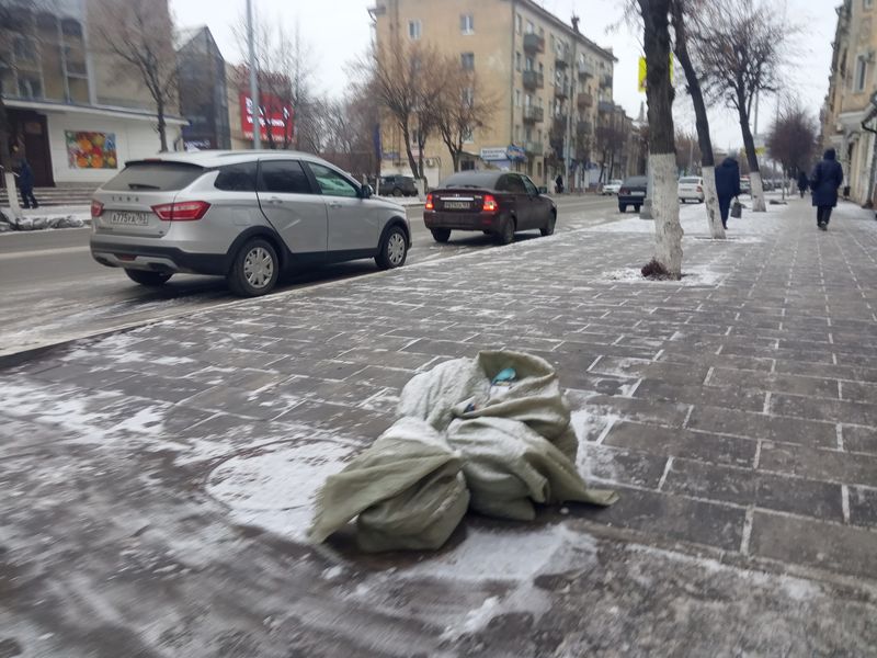 На центральной улице Сызрани валяются собранные в кучи мешки – никак в ожидании Деда Мороза
