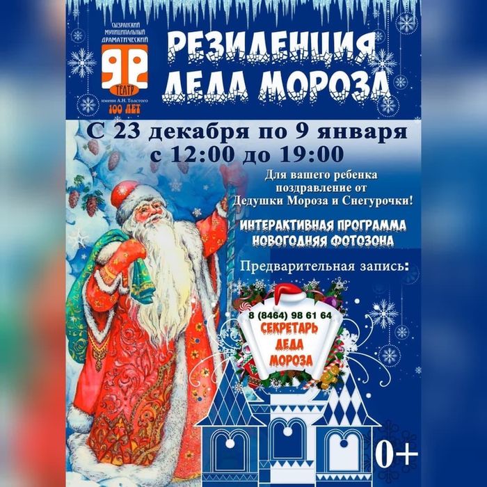 И еще одна не менее интересная акция начинается сегодня, 23 декабря – в театре стартует Новогодняя резиденция, где можно встретиться с Дедом Морозом и Снегурочкой, весело провести время со сказочными персонажами и сфотографироваться.