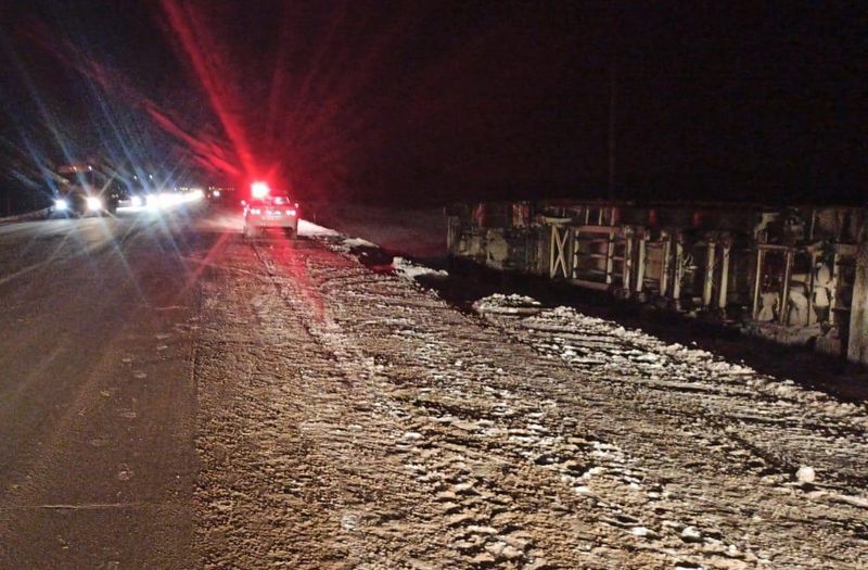 В воскресенье вечером, 26 декабря, на 892 км трассы М-5, грузовая фура Volvo завалилась на бок. По предварительной информации ГУ МВД России по Самарской области, в 19:00 55-летний водитель, управляя