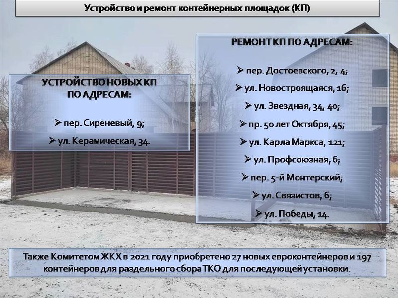 В Комитете жилищно-коммунального хозяйства администрации Сызрани подвели итоги года по направлению создания и поддержания комфортной и благоприятной среды проживания горожан. В силу специфики, деятельность КЖКХ охватывает достаточно широкий круг вопросов, связанных с обеспечением населения различными услугами. В 2021 году учреждением было заключено 102 муниципальных контракта на общую сумму 230 020 267,67 рублей, а подведомственной КЖКХ организацией МКУ «Служба городского хозяйства» - 183 муниципальных контракта на общую сумму 472 177 187,46 рублей. Краткий перечень мероприятий, выполненных в 2021 году – в 10 слайдах.
