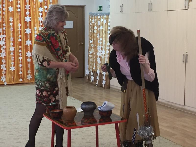 Ребята, совсем как взрослые, гадали на судьбу на горшочках: спрятанная под одним из них пуговица означала, что семья у гадавшего будет большая и дружная, вытащившего ленту ждала дальняя дорога («К морю летом с мамой поедем!» - сделала вывод одна из девочек), булочка - к достатку в семье, колечко - к новой дружбе. Вытянутая из-под горшочка еловая ветка привела детей в недоумение - но примчавшаяся на праздник Баба Яга помогла разобраться. Ветка - конечно, это новая метла! В благодарность колдунья даже покатала ребят на своем «летучем» агрегате и обрызгала их крещенской водой, чтобы ребята весь год не болели.