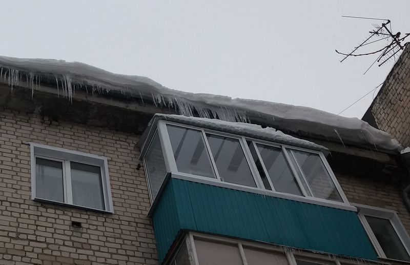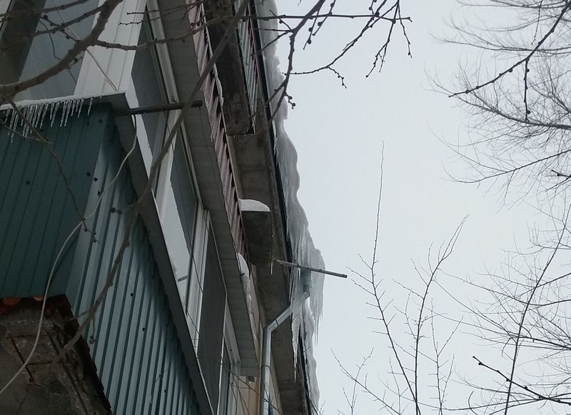 Горожанам следует чаще поглядывать вверх - крыши домов «украшены» устрашающего вида сосульками