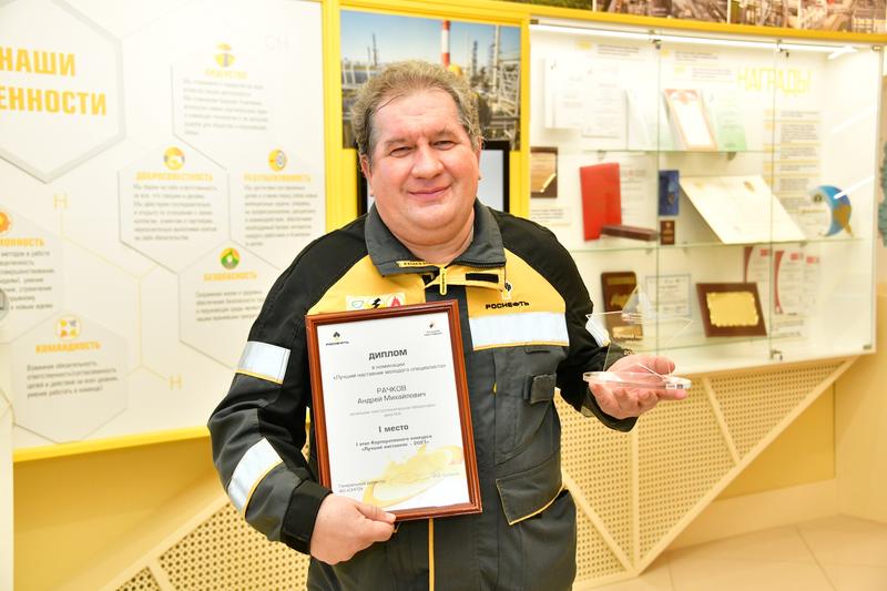 Участниками заводского этапа конкурса «Роснефти» на звание лучшего наставника стали 83 самых опытных нефтепереработчика. Именно им на заводе доверена работа с начинающими сотрудниками. Взаимодействие со вчерашним выпускником вуза или с человеком, уже имеющим опыт, требует разных знаний, навыков, подходов. Поэтому итоги конкурса подводятся в двух номинациях: «Лучший наставник молодого специалиста» и «Лучший наставник рабочего». Начальник электротехнической лаборатории электроцеха Андрей Рачков стал лучшим среди 20 наставников молодых специалистов. Подвижнический труд слесаря ремонтно-механического цеха Александра Кокушкина признан лучшим среди шести десятков наставников рабочих.
