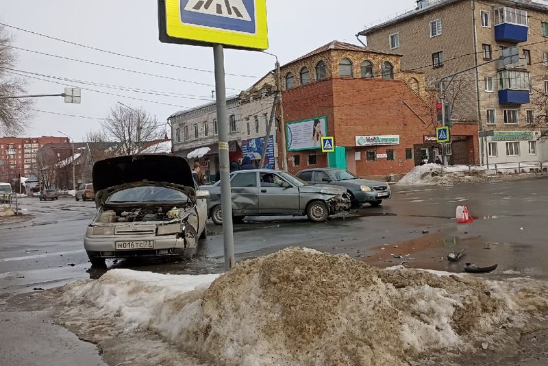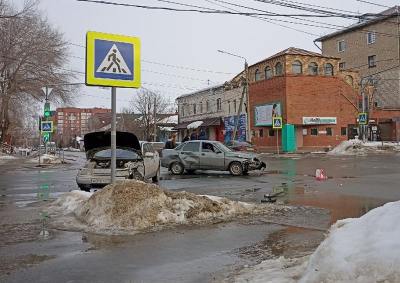 Сегодня, 27 февраля, в центре Сызрани столкнулись два автомобиля ВАЗ-2110. Авария произошла на пересечении улиц Ульяновской и Победы. Как сообщает корреспондент портала «маленькая Сызрань» с места аварии, «десятки» столкнулись передними частями кузовов - автомобили получили существенные повреждения, у одного из автомобилей, к тому же, вмятина в боку. Судя по всему, одна «десятка» ехала по улице Победы, вторая - по Ульяновской, но кто кого не пропустил, устанавливается. Пострадавших в этом ДТП нет. Столкнувшиеся автомобили перегородили часть перекрестка, создавая проблемы остальным участникам движения, но затора нет.