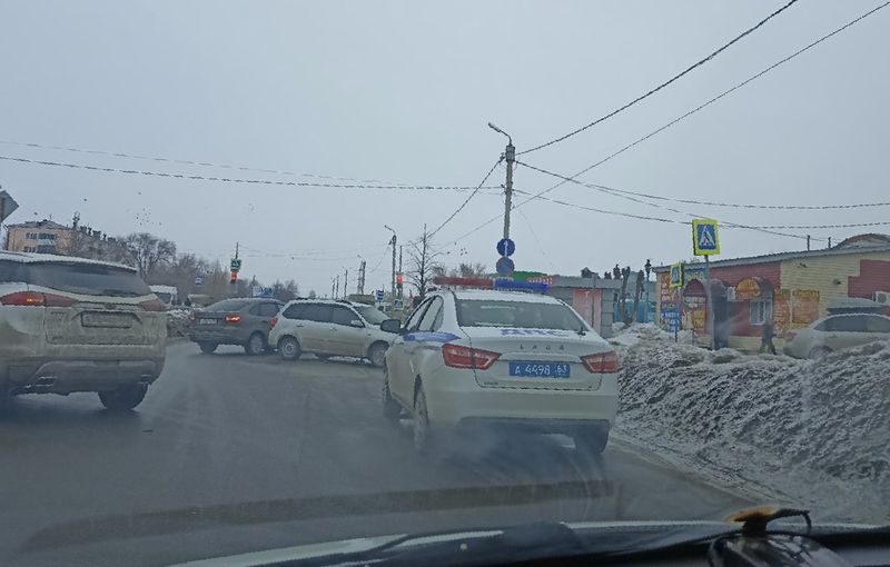 Две легковушки, столкнувшиеся на оживленном перекрестке в Сызрани, создали проблемы с проездом остальным автомобилистам