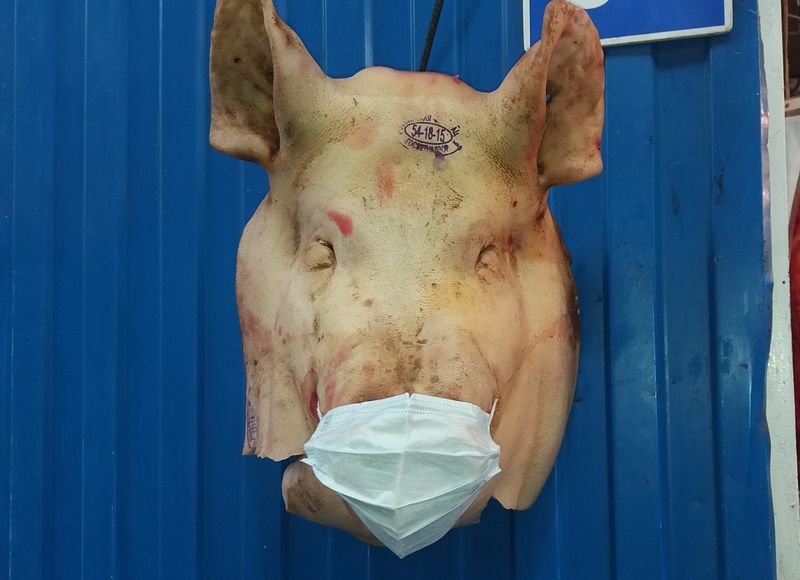 Кто-то из торговцев на Промышленном рынке в Сызрани решил развлечь или привлечь покупателей, нацепив на морду выставленной в мясном ряду головы свиньи, медицинскую маску. Если это был маркетинговый ход, то он, несомненно, сработал - товар привлекал внимание еще издали. Покупатели приостанавливались, присматривались к прилавку, отдельно кивали на голову. А многие, проходя мимо, снимали витринный образец на свои мобильные телефоны. В последние несколько лет торговцев на Промышленном рынке заметно поубавилось - многие секции давно уже пустуют. Посетителей тоже стало меньше в разы. Несмотря на поредевшие мясные ряды на рынке, за каждого покупателя все равно приходится бороться. Пусть даже таким способом.