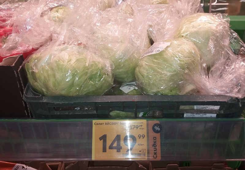 Не исключено, что за капусту в 150 рублей приняли за продаваемый в «Пятерочке» салат «Айсберг». Правда, на ценнике указана стоимость за штуку. Но кто на это внимания обратит при таких-то циферках!