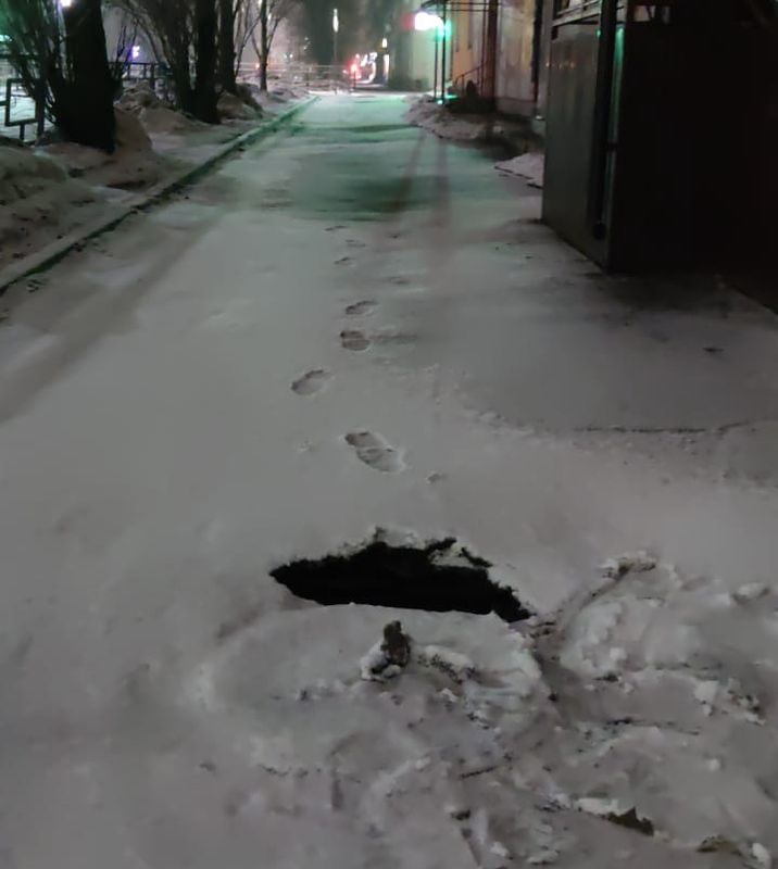 Сказать точно, когда этот провал появился на тротуаре, он не может. Во всяком случае, как мужчина сам пояснил корреспонденту портала «маленькая Сызрань», за то время, что он прогуливается по этой дорожке, дыры он не видел. Не исключено, что она появилась совсем недавно от талой воды.