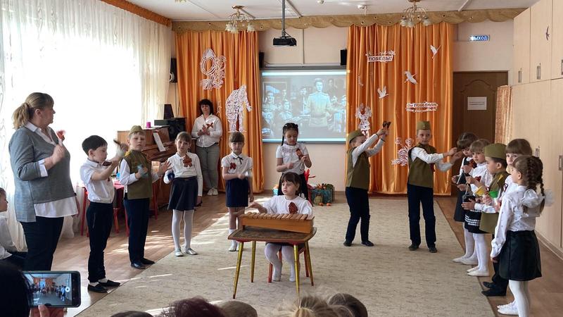 Дети почтили память защитников Родины. А «специально для маршала», о котором им рассказала методист сада Татьяна Бадеева, ребята аккомпанировали под «Смуглянку»