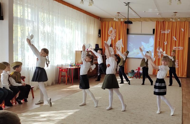 Ребята исполнили танец с голубями - символом отвоеванного мира;