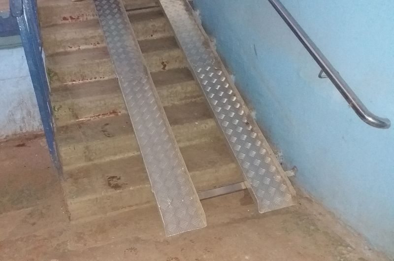 Однако в ЖКХ отметили, что вопрос более быстро можно решить в Управляющей компании – там могут прислать слесаря, закупить нужные материалы и удлинить пластины, на которых держатся полозья, настолько, что пандус слегка сместится к центру лестницы и по нему можно будет спуститься колясочнику.