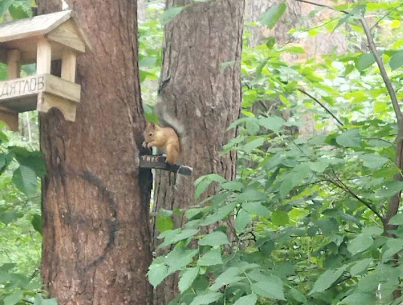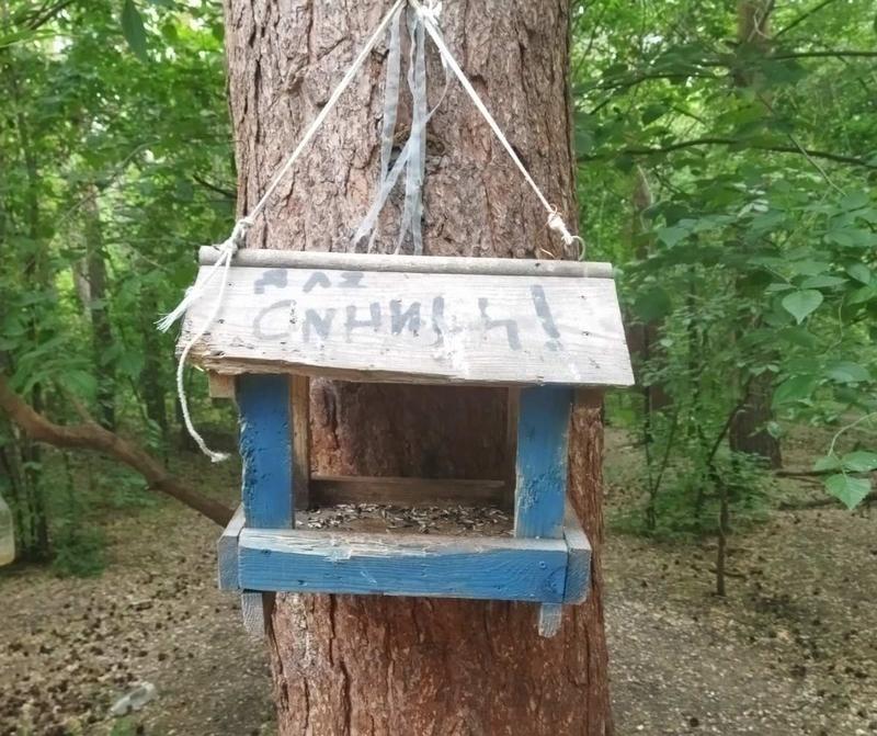 Широкая тропинка в лесу Юго-Запада, ведущая к профилакториям, давно стала излюбленным местом прогулки сызранцев. Сосны вдоль тропинки со временем «обзавелись» маленькими домиками-кормушками, установленными горожанами для лесных обитателей. Кто-то из горожан даже подписал кормушки, на случай если лесные жители ошибутся и придут на обед не в «свою» столовую. «Не трожь! Для дятлов», «Для синиц», «Для белочек» - гласят надписи на кормушках. Горожане, отправляясь на прогулку, нет-нет да и прихватят с собой корм для обитателей леса. Чаще всего люди стремятся накормить белок. Но, как отметила одна из горожанок, гуляющих в лесу Монгоры, нашлись нахалы, которые объедают рыжих любимцев.