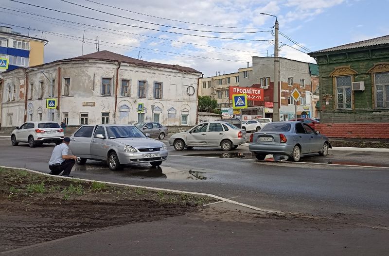 Практически в самый час пик в Сызрани, на оживленном перекрестке в центре города, произошло столкновение трех автомобилей: Chevrolet Lanos, Калина и Приора. Не разминулись легковушки у дома №36 по улице Ульяновской, что в месте пересечения с улицей Степана Разина. Судя по всему, Приора выезжала с улицы Степана Разина на Ульяновскую с поворотом налево и не смогла разминуться с иномаркой. От удара Chevrolet развернуло и это, возможно, стало причиной столкновения иномарки с Калиной. Участники аварии перегородили значительную часть дороги, мешая остальным участникам движения.