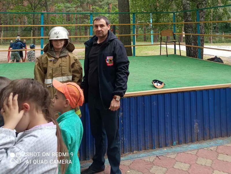 попавшим в ДТП людям. Отдыхающие в лагере ребята сами тушили из брандспойта условный пожар,