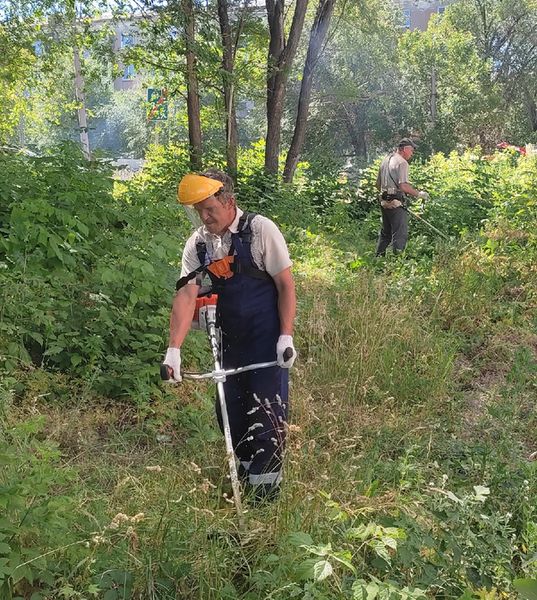 Сегодня, 6 июля, в Сызрани, у дома №41 по улице Жуковского в рамках санитарного дня сотрудники городской администрации, Комитета ЖКХ и других структурных подразделений, муниципальных предприятий МКУ «СГХ», МКУ «Благоустройство», МКУ «СЭЗиС» и ООО УК «Юго-Запад» приводили в порядок близлежащую территорию. Мужчины, вооружившись триммерами и топорами, вырубали поросль и косили траву. Фронт работы большой - планируемая площадь к окосу - более 11 тысяч квадратных метров. В прошлом году на этом же участке также проводились субботники, но сорняки растут быстрее, чем хотелось бы, и довольно буйно, так что от прошлогоднего порядка ничего не осталось практически. Сегодня на этом участке в общей сложности трудилось порядка 50 человек.