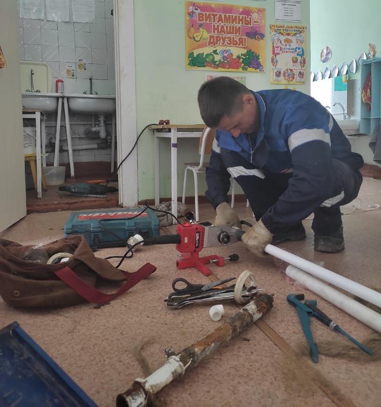 Работники «СЭЗиС» меняют в двух детсадах трубы горячего и холодного водоснабжения. Судя по фото старых, ржавых, изношенных труб, представленные комитетом ЖКХ - они давно нуждались в замене.