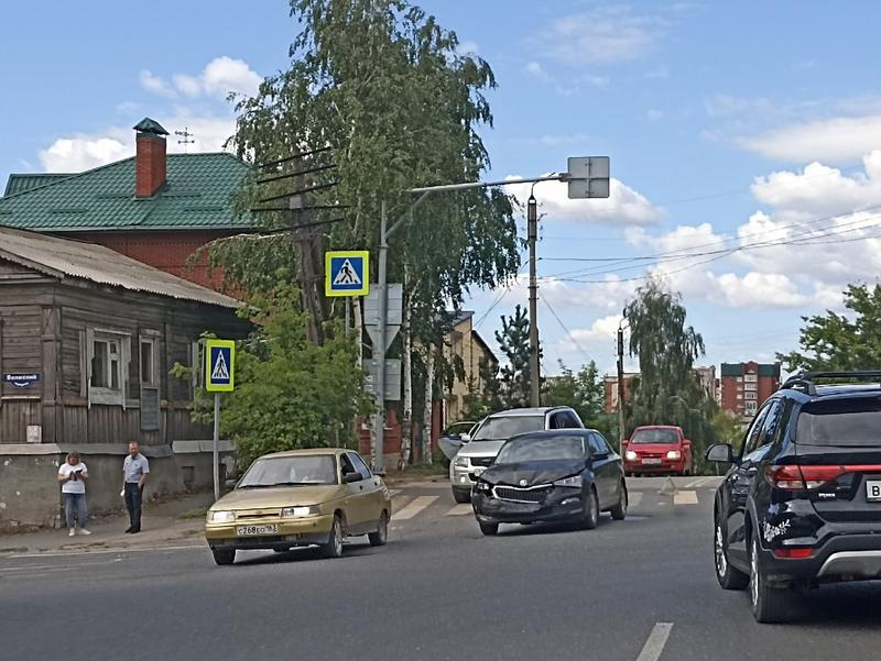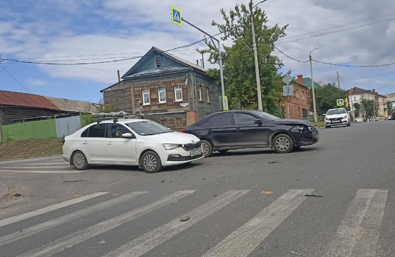 Сегодня утром в центре Сызрани столкнулись две легковушки: ДТП произошло на перекрестке переулка Волжский и улицы Ульяновской, там столкнулись Калина и Skoda. Как передает с места происшествия корреспондент портала «маленькая Сызрань», Skoda ехала по Ульяновской со стороны переулка Некрасовский, а Калина по переулку Волжский спускалась к пляжу. Skoda ударила Калину в правый бок. От удара отечественную легковушку развернуло, и сейчас она стоит на встречной полосе, частично на подъеме к перекрестку. Пострадавших в столкновении, по предварительной информации, нет, но участники ДТП частично мешают проезду.