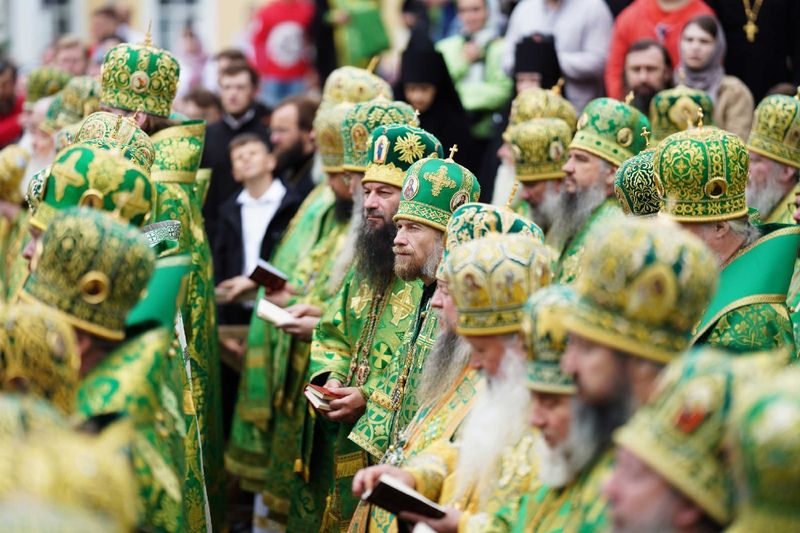 Торжественное богослужение совершалось на Соборной площади обители перед чтимой иконой преподобного Сергия Радонежского. На помосте перед Успенским собором Свято-Троицкой Сергиевой лавры был установлен престол под сенью. Его Святейшеству сослужили митрополиты и епископы епархий Русской Православной Церкви. В их числе: митрополит Самарский и Новокуйбышевский Сергий, епископ Сызранский и Шигонский Леонтий, а также епископ Одинцовский и Красногорский Фома - первый епископ новообразованной в 2017 году Сызранской епархии.