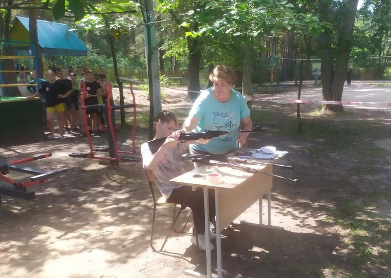 цель учебную гранату-«лимонку» и стреляя из пневматических винтовок.