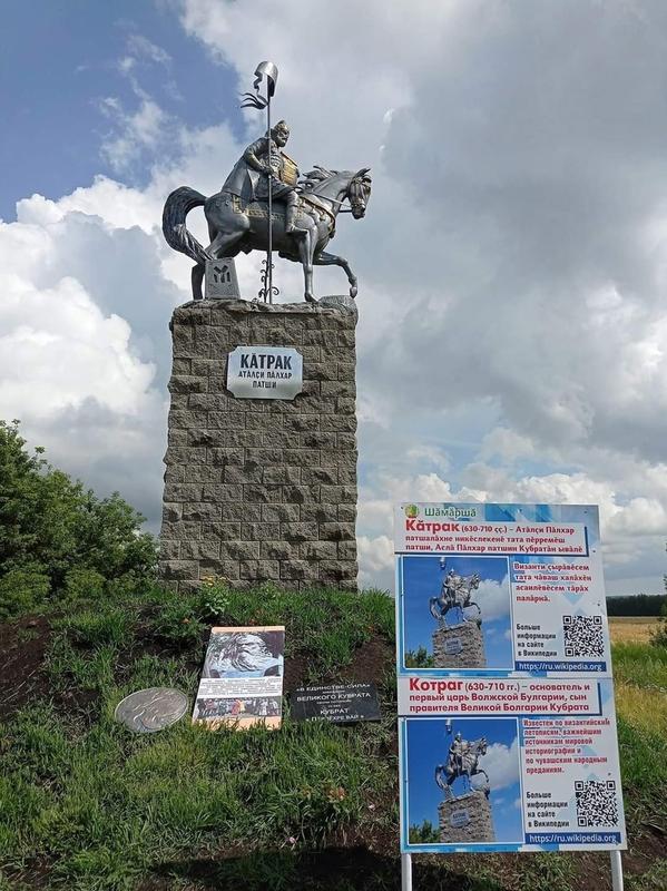 Сызранские чуваши побывали на открытии памятника предку чувашского народа и основателю Волжской Булгарии. Напомним, когда-то территория, на которой сейчас стоит Сызрань, входила в это великое государство, просуществовавшее несколько веков. До сих пор археологи находят остатки древнейших поселений булгар. А 30 июля, в Международный день дружбы на границе Чувашии и Татарстана состоялось торжественное мероприятие, посвященное открытию памятника великому предку чувашского народа, основателю Волжской Булгарии «Котраг на коне». Автор монумента в память о великом воине и предводителе кочевого народа кутригуров, выведших людей из разгромленных хазарами земель на новые, неведанные территории - скульптор Николай Кондрашкин.