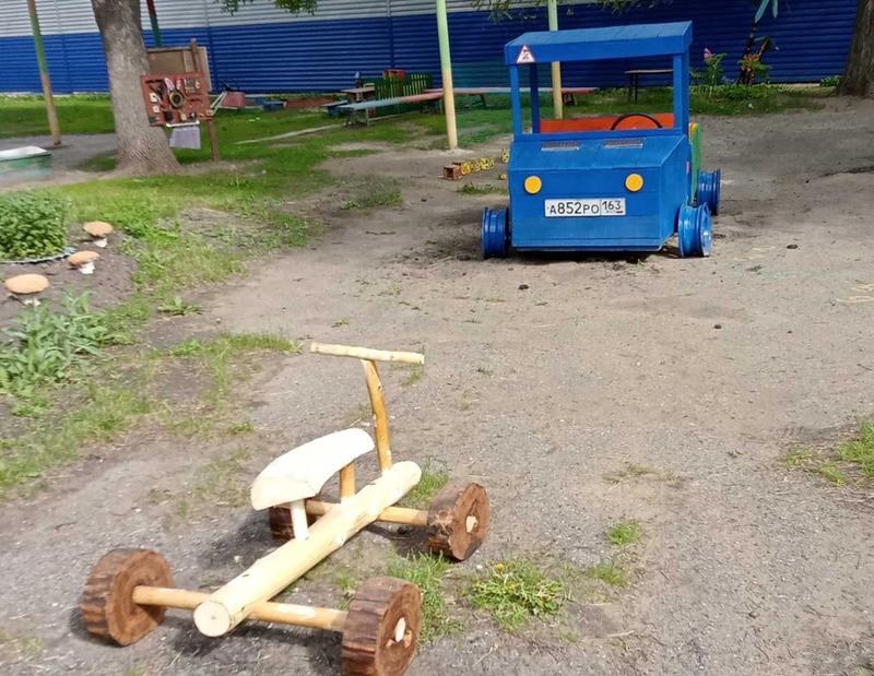 В ближайшие выходные сосед Сызрани - город Октябрьск будет праздновать День города. Намечена обширная программа культурных, спортивных, познавательных и прочих мероприятий, в которых смогут участвовать и гости из Сызрани; состоятся торжества и встречи духовного плана, и в числе прочего - награждение победителей традиционного ежегодного конкурса по благоустройству. Жюри определило лучшие дворы города, образцовые подъезды, частные усадьбы, самые шикарные клумбы и самые креативные территории детских садов. Один из победителей, СП «Детский сад №2 ГБОУ ООШ №2» г. Октябрьска «Золотая рыбка» уже был героем публикации портала «маленькая Сызрань», во многом благодаря активистам - семье Любови и Антона Синельниковых, чьи дети ходили и будут ходить в «Золотую рыбку». В мае этого года семья подарила саду автомобиль, который супруги сделали своими руками. И на этом подарке октябрьцы не остановились: они решили снова порадовать малышей и педагогов.