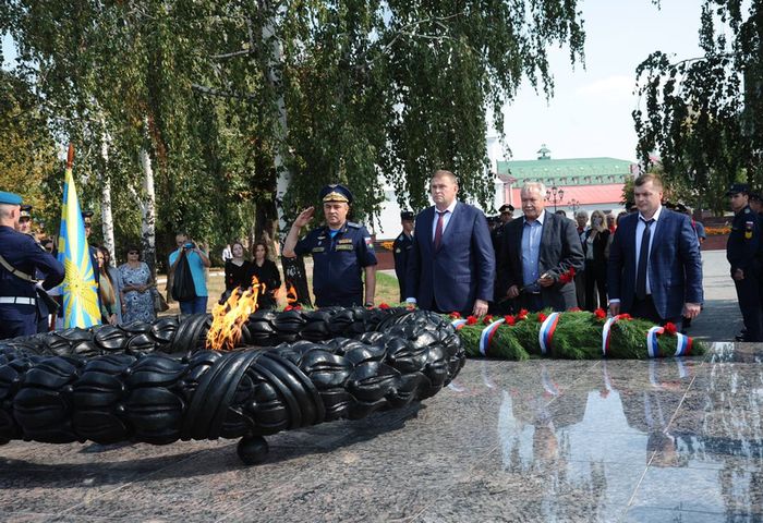 Символ памяти зажег курсант Сызранского вертолетного училища - на несколько секунд огонь был погашен, затем от поднесенного горящего факела он вспыхнул снова. Глава города Анатолий Лукиенко вместе с ветеранами, военнослужащими, общественными деятелями и членами патриотических объединений возложили цветы к монументу.