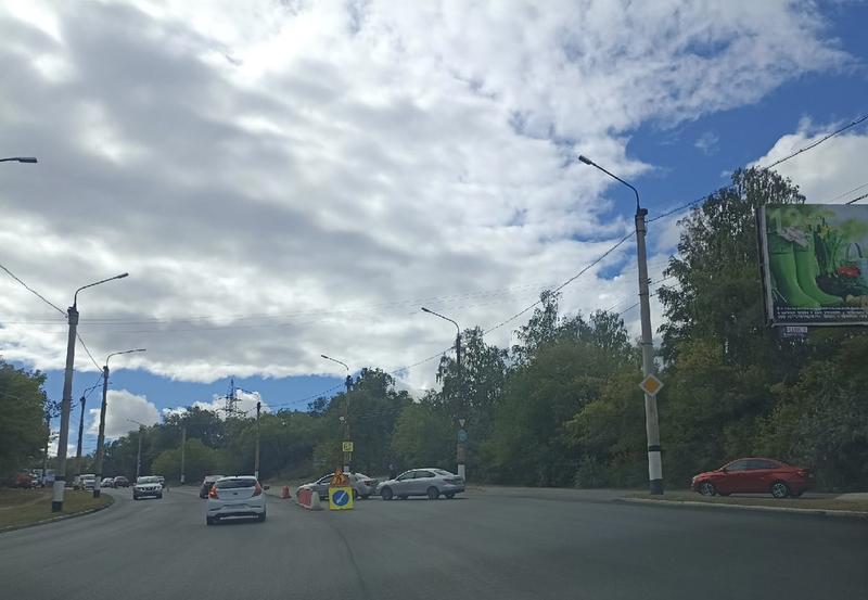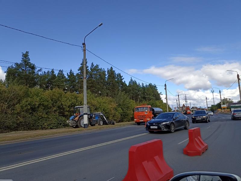 Автомобилисты вынуждены ехать по встречной полосе, объезжая участок ремонта автодороги по улице Охотной, так называемой «верхней дороги», ведущей от Монастырского моста вдоль леса в сторону ЦГБ. Из-за работ по укладке асфальта на большом отрезке автодороги автомобилисты вынужденны выезжать на встречку. К тому же, именно в том районе произошло ДТП: Chevrolet столкнулся с Nissan, и оба автомобиля встали поперек дороги. Впрочем, они не мешают движению: легковые авто столкнулись как раз там, где начинается участок, на котором нужно выезжать на встречную полосу, чтобы объехать то место, где рабочие укладывают новый асфальт.