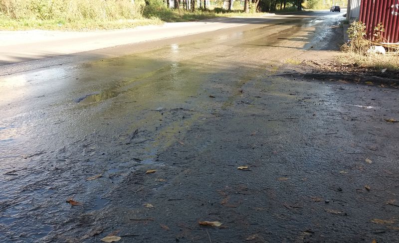 Поток, и правда, пробил уже себе дорогу довольно далеко от места, откуда вытекает - вода стекает вниз по Астраханской в направлении Жуковского, а дальше по Жуковского течет в направлении нижнего кольца Монгоры. Мокрый асфальт доходит практически до села Образцовое.