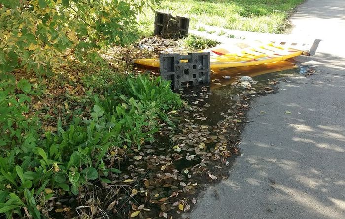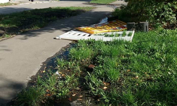 В этом месте, как рассказали местные, проблема с течью давняя и так до сих пор и не решаемая. За все время, что жители Образцовской площадки пытаются достучаться до коммунальщиков, так ничего и не сделано было. Оградки только стоят и все.