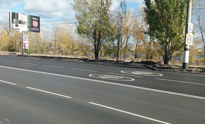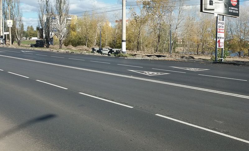 Что до новой разметки, то помимо нарисованных «зебры», сплошных и прерывистых полос, на полотне появились изображения дорожных знаков, предупреждающие водителей об ограничении скорости на этом участке дороги. Цифра 40, окаймленная белым прерывистым кольцом, встречается на магистрали в нескольких местах. Еще один дорожных знак, который изображен на асфальте - «Дети». Эти знаки нарисованы в непосредственной близости от пешеходного перехода около монастыря - рядом расположена школа, так что водителей призывают быть на этом участке дороги более осторожными.