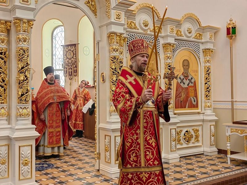 Его Преосвященству на божественной литургии сослужили: секретарь Сызранской епархии протоиерей Михаил Гордеев, благочинный Октябрьского благочиния иерей Владимир Чудинов, настоятель Свято-Никольского храма протоиерей Дионисий Ткачёв, настоятель Христорождественского храма иерей Виктор Касьяненко. Диаконский чин возглавил иеромонах Антоний (Литуновский).