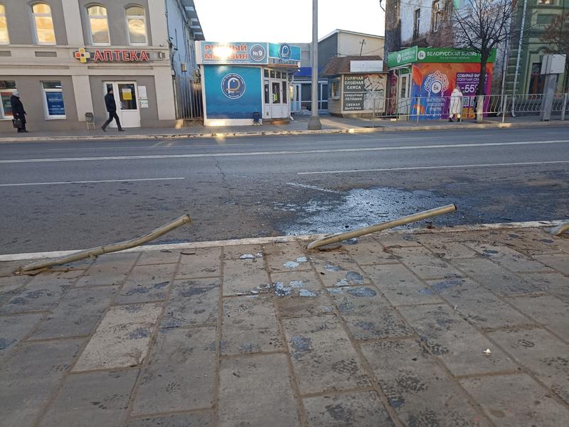 Судя по следам на месте аварии, после контакта автомобилей, Приора вылетела на тротуар нечетной стороны улицы Советской, где снесла несколько секций удерживающих ограждений и врезалась в мачту уличного освещения.