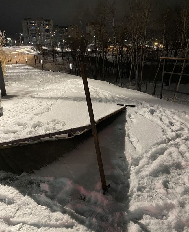 «Ну и последний штрих к «портрету», так сказать. В начале недели ветром, или благодаря чьей-то ноге, на земле оказался информационный баннер, который все лето и осень стоял неподалеку от автобусной остановки напротив монастыря. Мы по нему еще рассматривали, где и какие дорожки будут проложены, где лестницы и смотровые площадки обустроят. Вчера вечером соседи сделали фотографию того же валяющегося баннера, уже запорошенного снегом. В среду утром он точно уже лежал на земле. Очень сложно представить, что за все дни никто из сотрудников коммунальных структур города этого не видел - с дороги его хорошо заметно. Но он как валялся, так и валялся. Вечером в пятницу, когда включили освещение и на набережную повалили люди, присыпанный снегом, он запросто мог стать причиной травматизма. Но никому словно и дела нет», - делились замечаниями сызранцы.