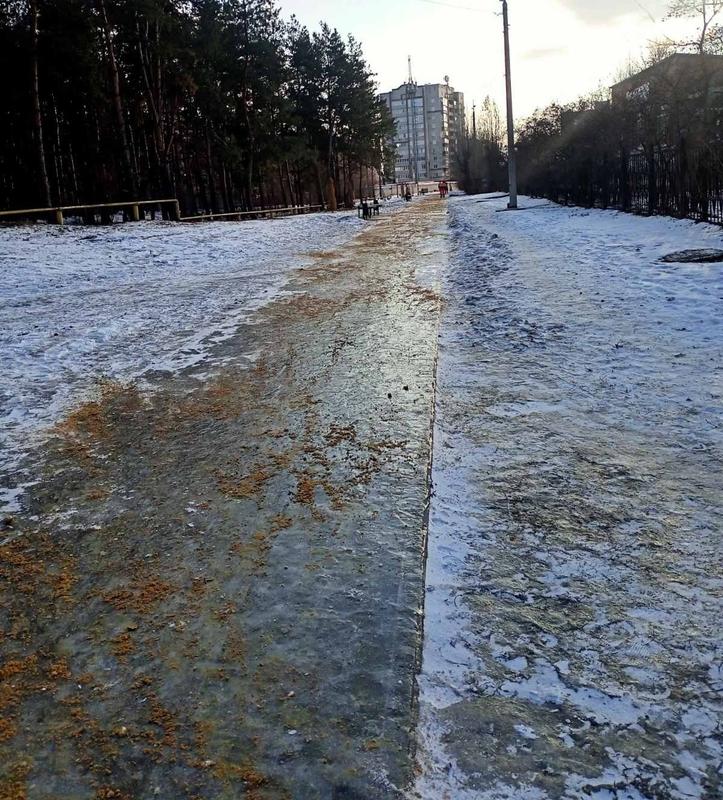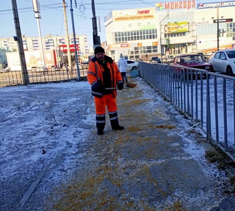 Кроме того, противогололедной смесью обработали тротуары: они вчера