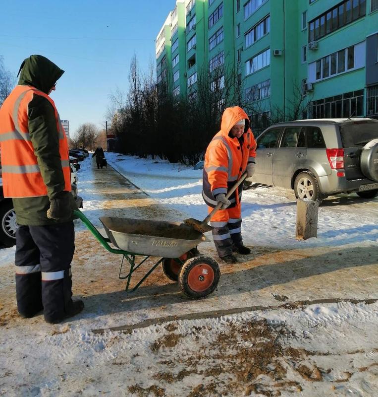 сделать пешеходные зоны безопасными: очистили их от снега и посыпали
