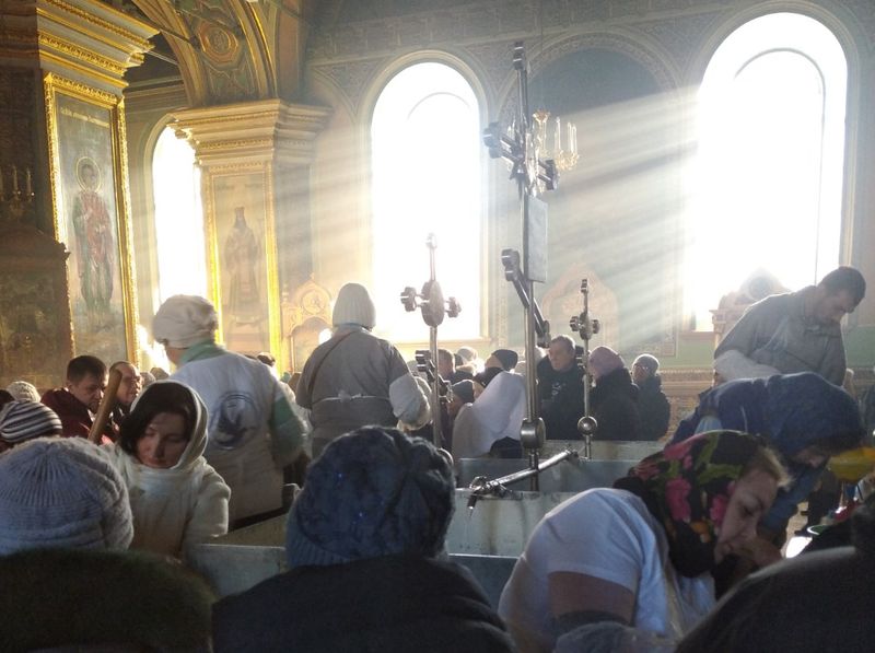 Впрочем, были и те, кто набирал не только для себя, но и для престарелых соседей и родственников, которые не смогли попасть в храм. Впрочем, крещенскую воду можно было набрать и дома из крана - освященная самим праздником, вся вода в этот день становится уникальной.