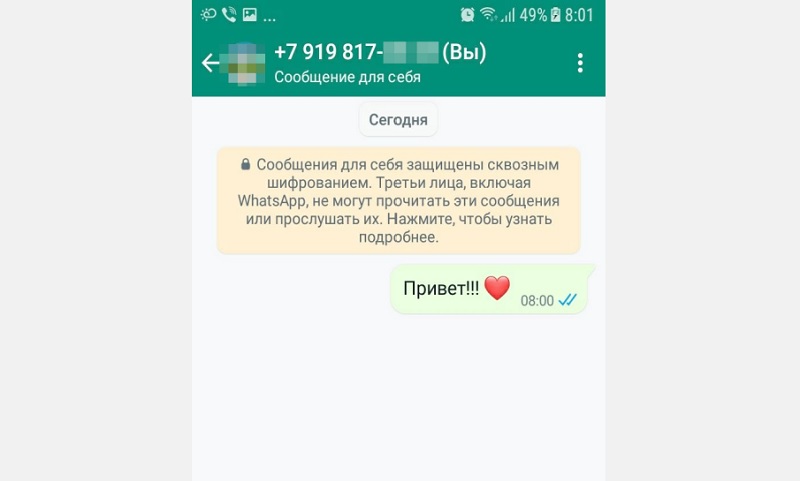 Мессенджер WhatsApp ввел возможность отправлять сообщения самому себе для их сохранения. «Создайте чат для переписки с самим собой, где будет удобно хранить заметки и напоминания, которые синхронизируются между устройствами. Нажмите «Найти чат» и выберите «Сообщения для себя»», — говорится в описании. В новом обновлении поиск в чате можно вести по дате. Помимо этого, у пользователей появилась настройка, позволяющая определять, кто может видеть их в cети. Как успели отметить жители Сызрани, на их мобильных устройствах уж появилась функция отправки сообщений самим себе/