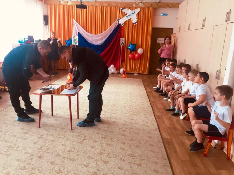 участниками праздника стали отцы детсадовцев. Ребята разделились на две