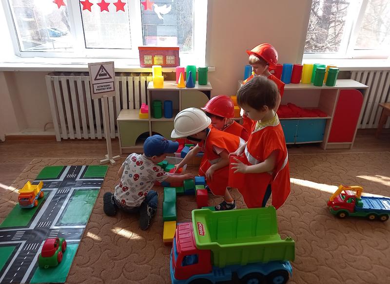 Вторая игра собрала мальчиков-строителей, которым довелось строить дом для героев сказки. Прораб умело руководил процессом стройки, водитель подвозил строительный материал, бригада быстро возвела красивые, комфортные и очень удобные апартаменты для зверят.