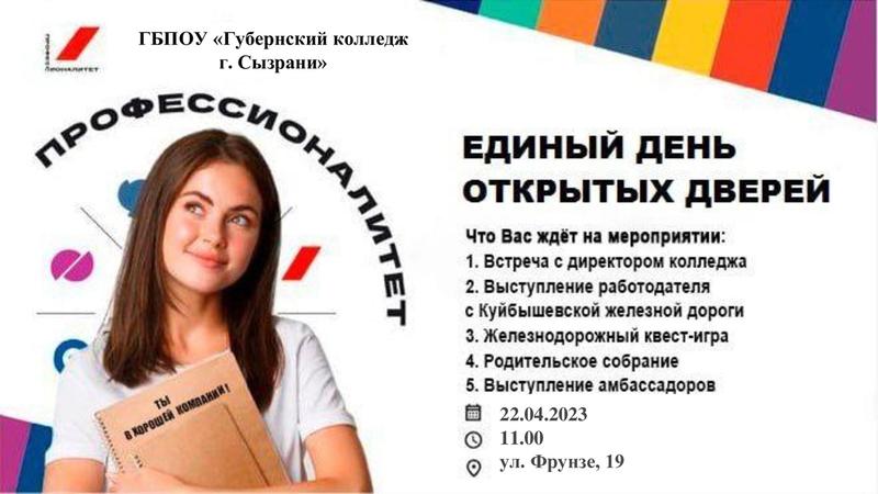 День открытых дверей начнется 22 апреля в 11 часов на улице Фрунзе, 19.