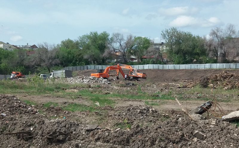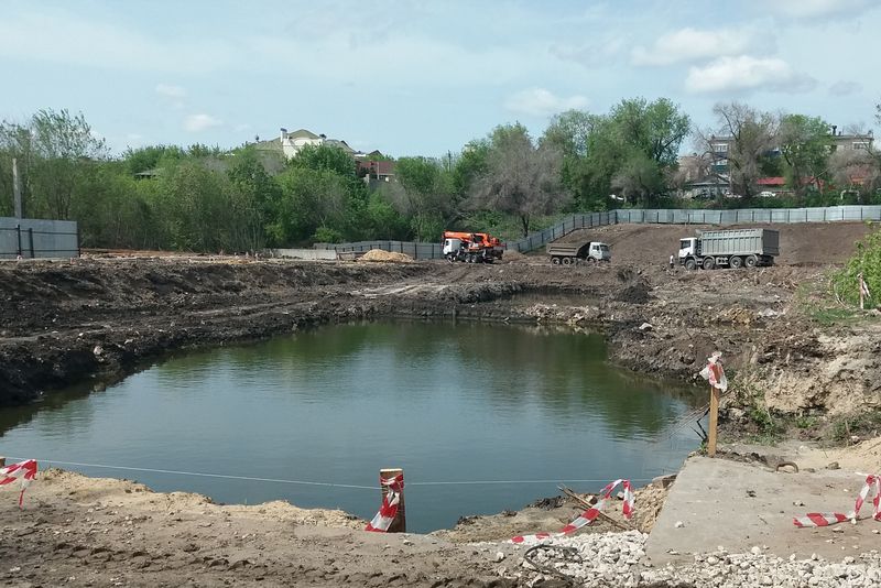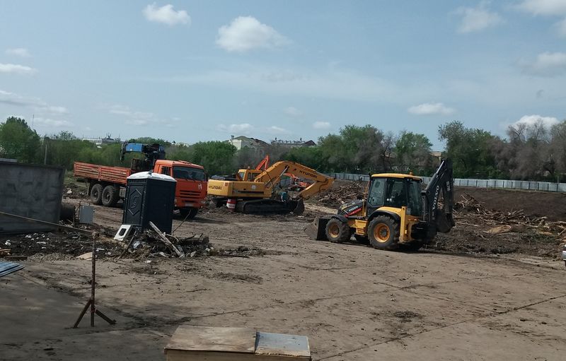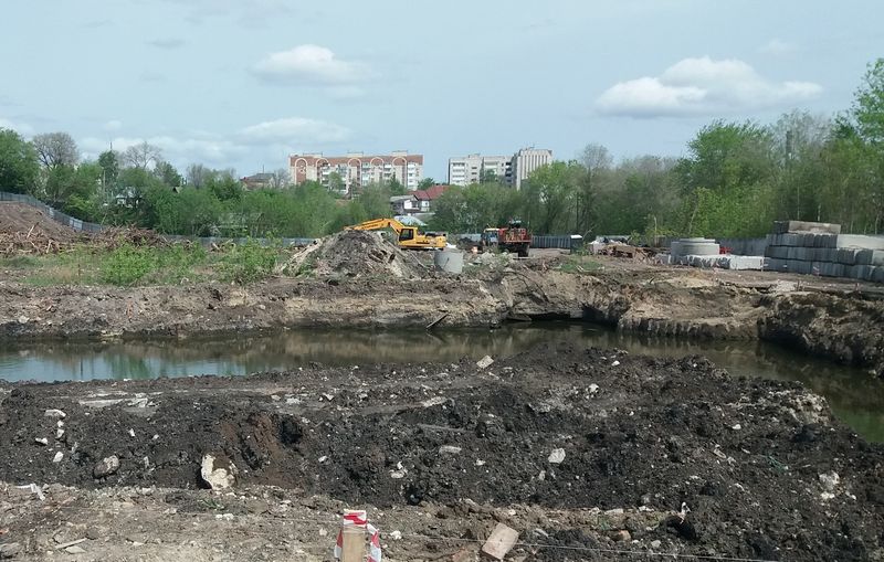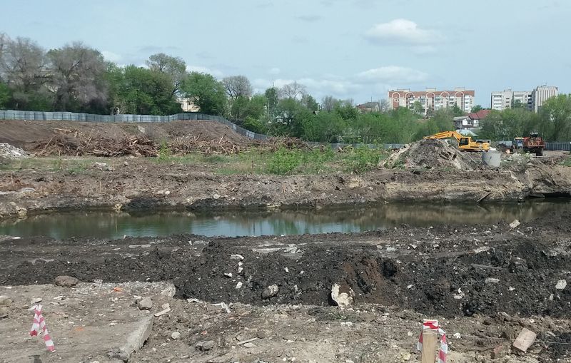Территорию в границах улиц Карла Маркса, Соловьева и Бабушкина, известную в Сызрани, как Лягушачий парк, уже не узнать - густая дикая поросль выкорчевана и большинство древесины уже вывезена. На участке работает около десяти единиц тяжелой техники, завезены некоторые стройматериалы, рабочие продолжают возводить вокруг территории забор. Площадку вовсю готовят под закладку фундамента, но на территории скопилось довольно много воды - сперва придется создать дренажную систему. Она в любом случае необходима, учитывая специфику местности.