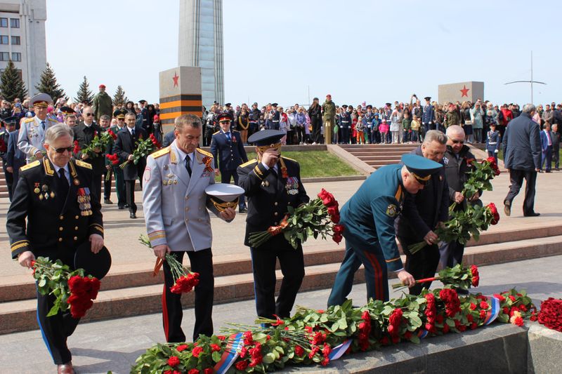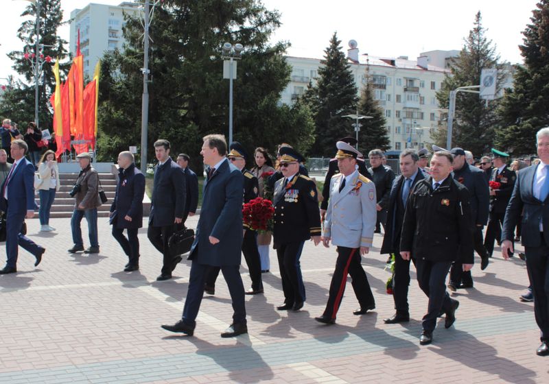 По завершении парада начальник Главного управления МВД России по Самарской области генерал-лейтенант полиции Игорь Иванов совместно с первыми лицами региона, руководителями силовых ведомств и правоохранительных органов, общественных и ветеранских организаций, а также жителями и гостями Самары возложили цветы к Вечному огню у горельефа «Скорбящей Матери-Родине» на площади Славы, отдав дань памяти всем, кто ценой собственной жизни отстоял для нас победу в Великой Отечественной войне, и почтив их минутой молчания.