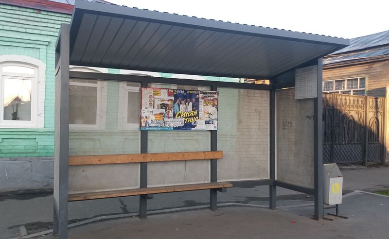 Главная проблема новых конструкций, что из легко разбить, раскурочить, изувечить. И до недавнего времени оставались лишь остановочные павильоны, до которых еще не добрались руки местных дикарей, это установленные вдоль Интернациональной и Декабристов от Усадьбы до пересечения с улицей Волжский спуск. Еще один такой павильон установлен на улице Ульяновской у музея.